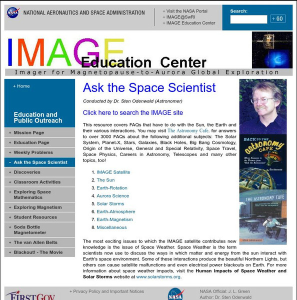 A NASA scientist, Dr. Sten Odenwald, answers many students' questions. Topics include planets, galaxies, black holes, the origin of the universe, and common misconceptions about space.