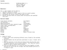 Students investigate patterns in solids, the structures of crystals and rocks made up of minerals. In this crystals lesson plan, students review solids, make patterns with Styrofoam balls, make crystals in the lab and observe their...