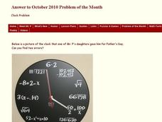 In this algebra worksheet, students observe and identify different parts of a clock using a quadratic function. Their goal is to find two errors in the clock by solving the equation for its roots.