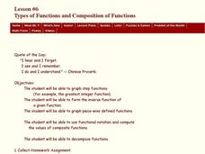 Algebra II classes solve problems relating to piecewise functions, step functions, and decomposition/composition of functions. They utilize links to work with real world examples. Mr. Pleacher has added humor to the instructional...