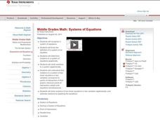 Students solve problems using systems of equations. In this algebra instructional activity, students find the point of intersection of two lines. They use the TI Calculator to graph and see the point of intersection.