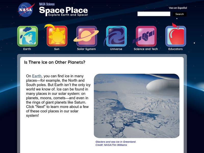 Explore the solar system like never before with this photograph viewer. Choose the planet, then scroll through the many beautiful photographs taken by space missions. Read about how each photo shows evidence of the presence of ice.