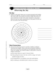 In this space science worksheet, students find the words that are related to the observations made of constellations and other related puzzles.
