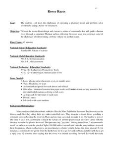 Students identify the challenges encountered by astronauts in operating a planetary rover. In this space science lesson, students create a rover using their team members. They follow a command sequence from the driver and navigate...