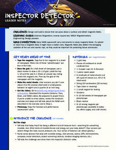 How do spacecraft detect magnetic fields? The fourth installment of a five-part unit has learners develop a device with magnets that allows for the detection of magnetic fields. They use a map of an imaginary planet to try out their...