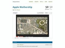 Explore Apple's spaceship office building. Built in the shape of a circle, the office building offers a unique floor plan challenge. Young scholars use the dimensions of the building to estimate the square footage for each employee.