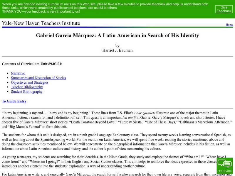 Yale New Haven Teachers Institute: Latin Amer. In Search of Himself