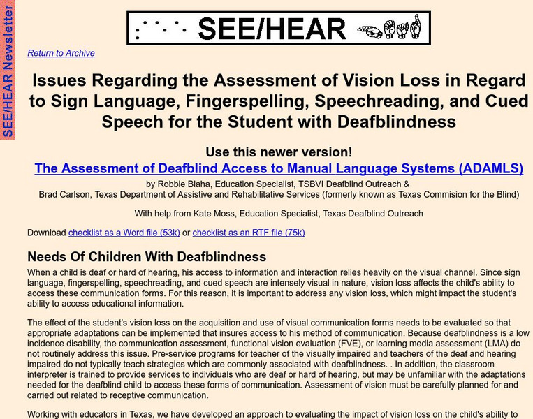 A comprehensive article on the issues faced in assessing students who are deafblind, and on the effects vision loss has on their access to communication. Included in the article is discussion on the difficulties students who are...