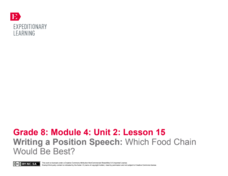 Eeny, meany, miny, moe. It's time to choose a side. Scholars learn about taking a position by watching a video of a speech about local organic food. Next, pupils use graphic organizers to plan their speeches about which food chain is...