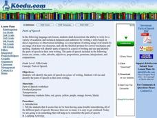 Reinforce the importance of the writing process with this publication lesson. Elementary and middle schoolers compose a parts of speech book which includes one page each for nouns, pronouns, verbs, adjectives, adverbs, prepositions,...