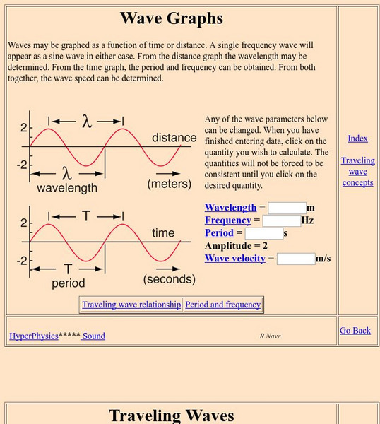 Two wave graphs depicting a sine wave and relating the various characteristics (wavelength, amplitude, frequency, and period) of a wave to each other. The site includes an interactive JavaScript form in which the visitor enters one...