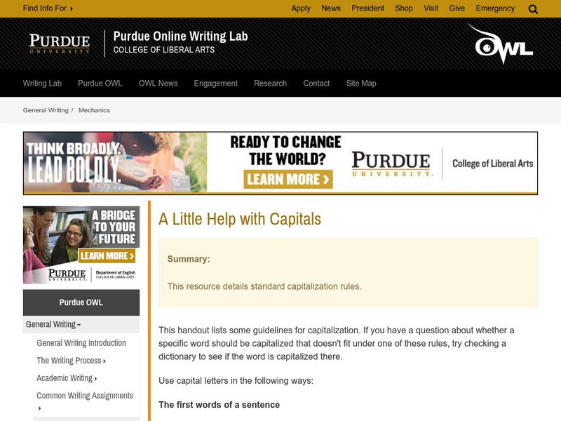 This Purdue University lesson explains capitalization rules by giving simple examples. L.11-12.2 Cap/Punc/Spell