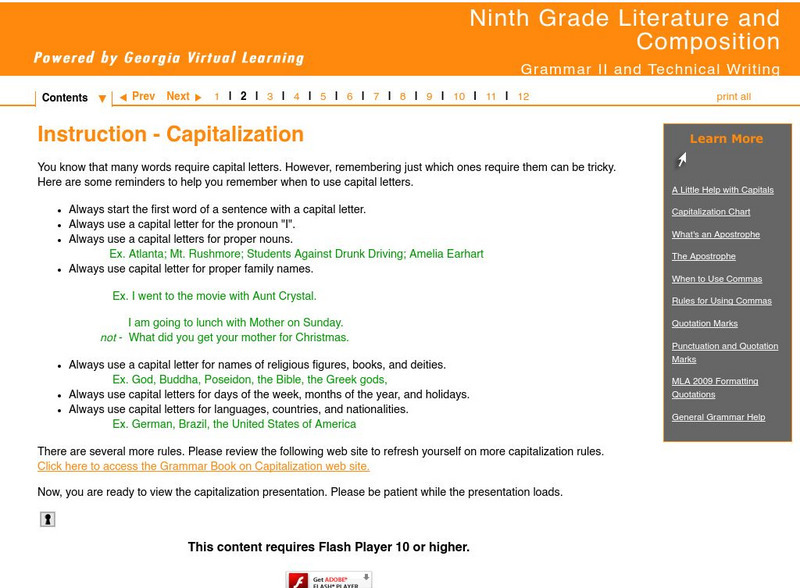 Ga Virtual Learning: Grammar Ii and Technical Writing: Capitalization