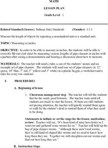 First graders measure the length of pipe cleaners to form worms using rulers to focus on inches. They record their results and graph the measurement of each pipe cleaner. They measure their pipe cleaner "worms" in various colors and...
