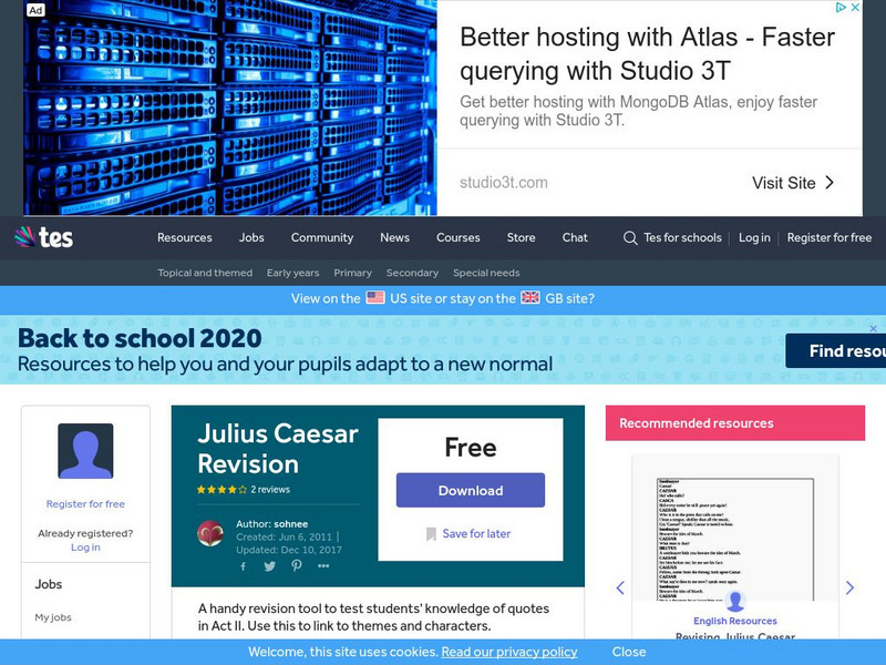 [Free Registration/Login Required] This PowerPoint lesson contains a series of Wordles that will help test students' knowledge of quotes in Act II of Julius Caesar. Teachers can use this to link Act II of Julius Caesar to its themes and...