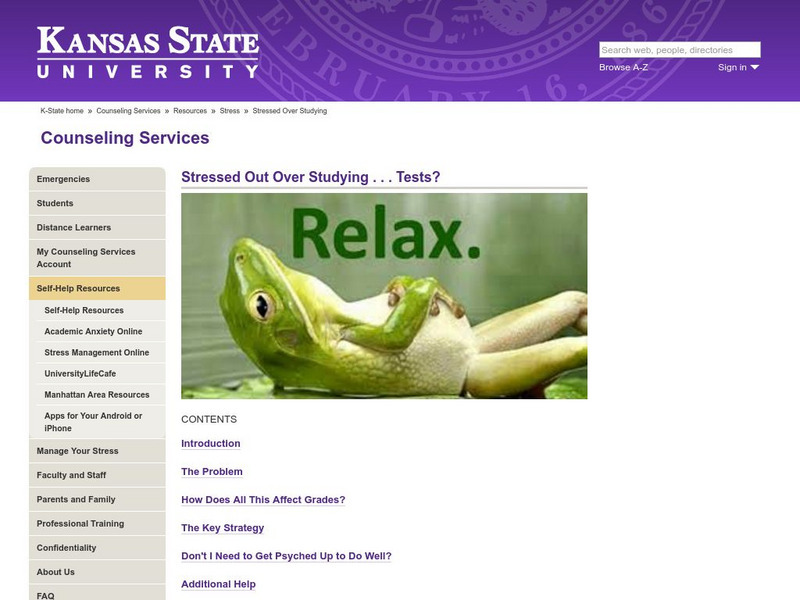 Kansas State Univ.: Stressed Out Over Studying Tests?