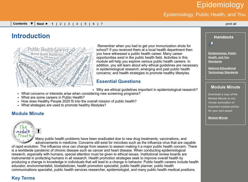 Activities in this comprehensive interactive tutorial will help you explore various public health careers. In addition, you will learn about why ethical guidelines are necessary in epidemiological research; emerging and past public...