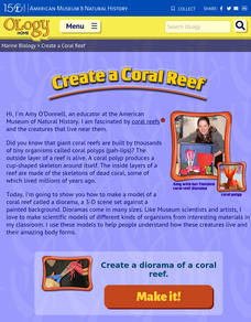 Scholars create a diorama to showcase a vibrant coral reef. Six steps walk pupils through setting up the diorama box, crafting four different types of marine life, and putting it all together.