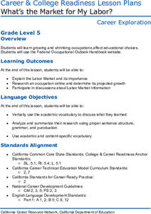 A lesson showcases how knowing about Labor Market Information (LMI) supports searching for future job opportunities. Following a review of the concept and other vocabulary terms, scholars research occupations and answer questions on...