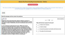 Scholars test their reading comprehension skills with an interactive practice. After reading about the Boston Tea Party, learners answer 10 multiple-choice questions. A progress report details their work.