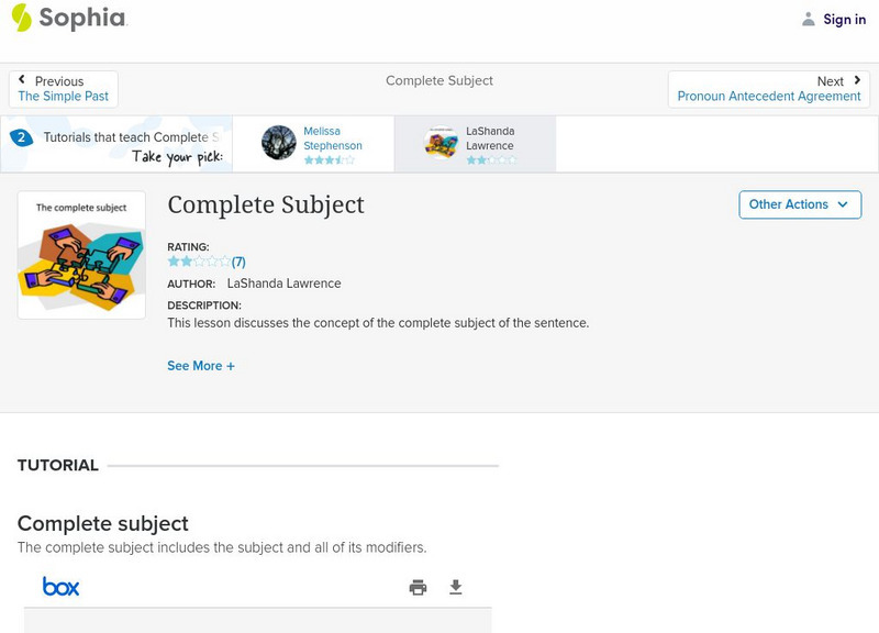 Activity provides students the practice they need to master the skill of identifying the subject. Immediate feedback is given.