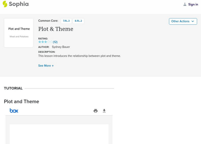 This lesson introduces the relationship between plot and theme. This tutorial lesson shares a short slideshow with the lesson's content.