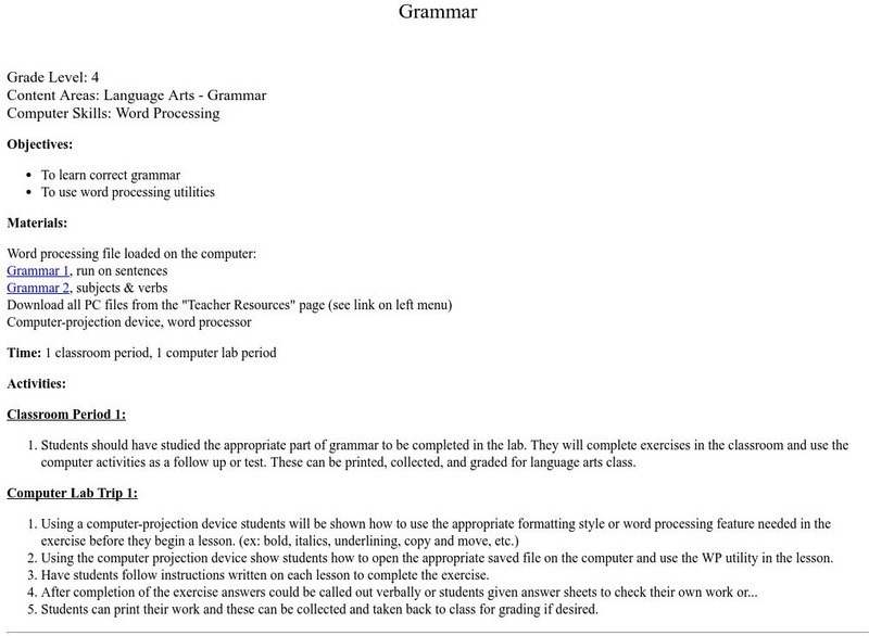 A lesson plan using a word processor to correct common grammar mistakes.