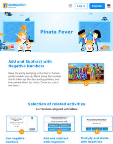 A fast paced game where students add and subtract positive and negative integers quickly so they can smash a pinata. Three levels of play, and instructional help is available as they progress.