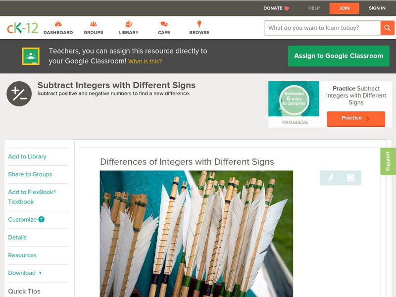 Ck 12: Arithmetic: Differences of Integers With Different Signs