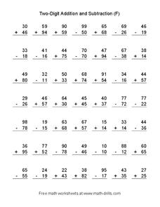 In this addition and subtraction worksheet, learners enhance their addition and subtraction skills by solving the 2-digit problems. Students solve 49 problems.