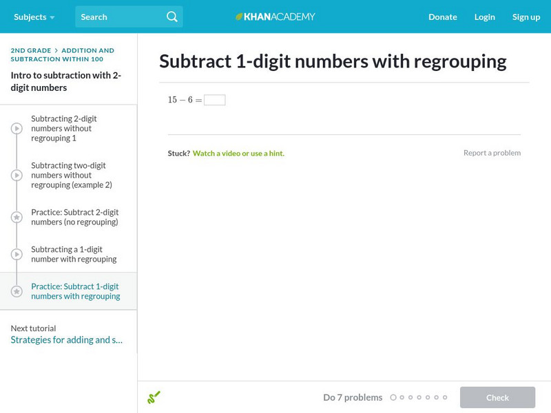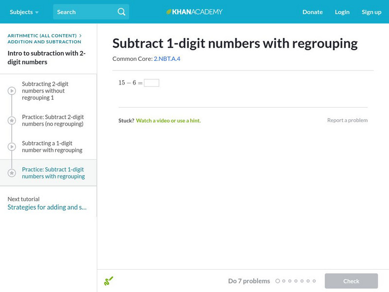 Khan Academy: Subtract 1 Digit Numbers With Regrouping