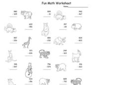 In this subtraction instructional activity, students find the differences in 15 two and three digit problems in which they regroup as needed. They see black line pictures of dinosaurs and animals on the page.