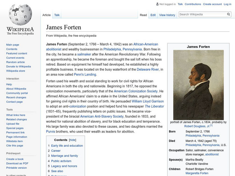 Learn about the life of James Forten, who was a successful inventor, businessman, abolitionist and social activist in the early years of the United States.