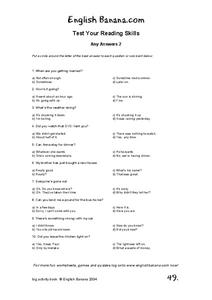 In this ESL worksheet, students read 10 everyday questions and comments. Students circle the letter of the best answer to each question or comment.