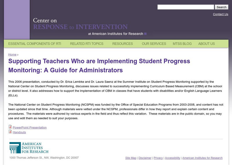Center on Response to Intervention: Supporting Teachers With Progress Monitoring