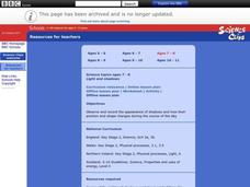 Students capture shadows for a shadow dance! They experiment with shadows created by people or items blocking light sources (sun, bright lamp) to draw their shadow pictures. Afterward, they cut out the shadows and arrange them on a large...