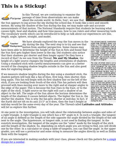 Middle schoolers take measurements throughout the day using a simple sundial called a gnomon. They record the results on a Data Log and convert from English units to metric (S.I.) units. Data points are plotted on the same graph and...
