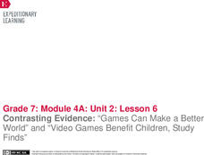 Anecdotes, analogies, testimonies, statistics. The most powerful arguments rely on multiple types of evidence. Scholars explore the topic as they read contrasting evidence about the benefits of video games. They complete Venn diagrams to...