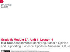 Mid-Unit Assessment: Identifying Author’s Opinion and Supporting Evidence: Sports in American Culture