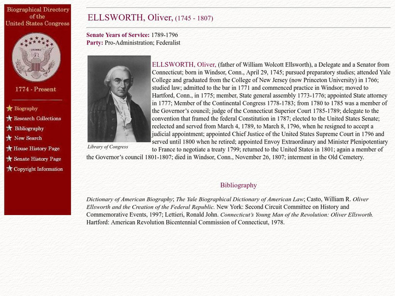 Loc: Biographical Directory of the u.s. Congress: Oliver Ellsworth