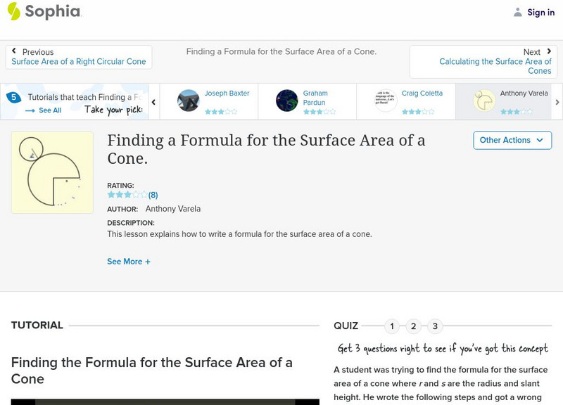 Sophia: Finding a Formula for the Surface Area of a Cone: Lesson 6