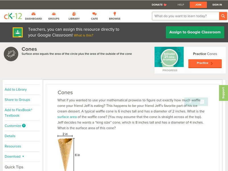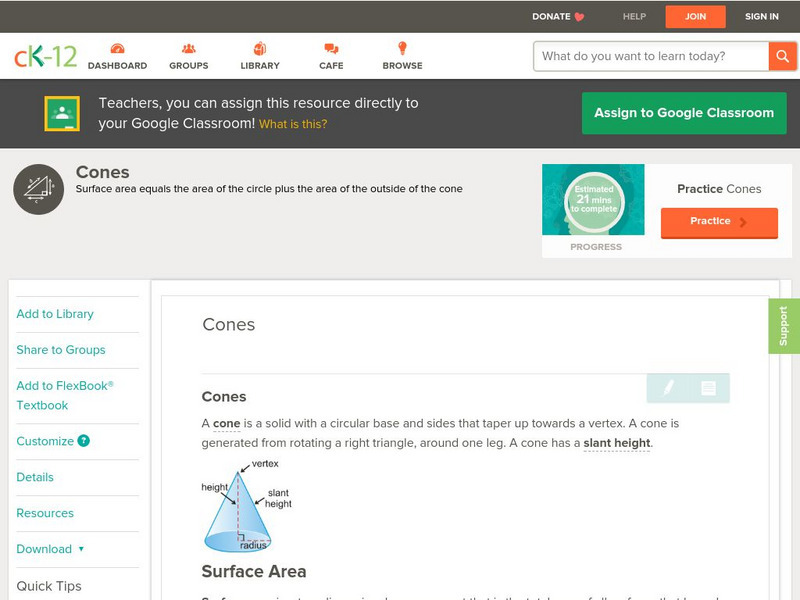 Ck 12: Geometry: Surface Area and Volume of Cones