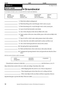 In this groundwater worksheet, students use 12 given terms and match them to their definitions related to characteristics of groundwater and the components of the ground where the water travels. Students also fill in 5 blanks with given...