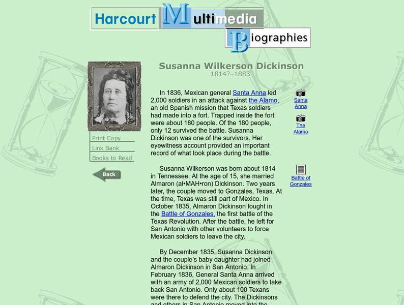 Harcourt: Biographies: Susanna Wilkerson Dickinson 1814? 1883