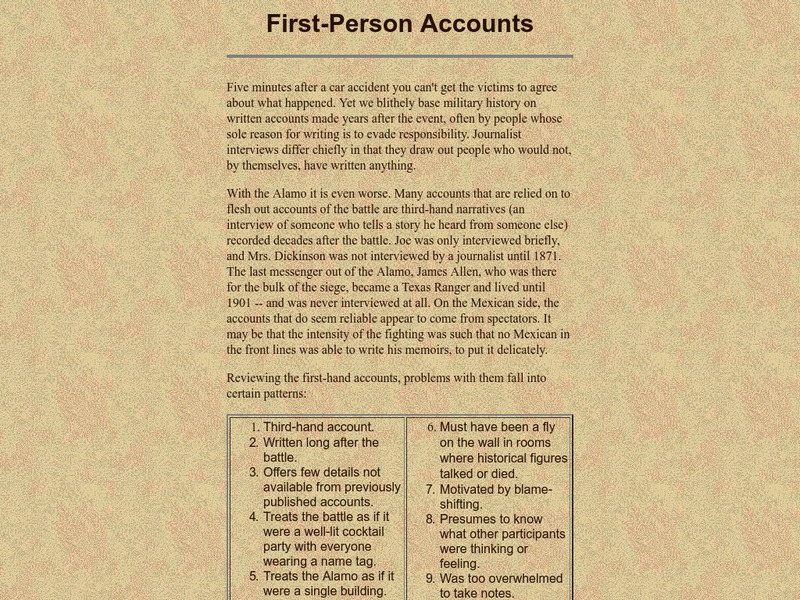 Explore this site to read the life history of Susanna Dickerson, one of only 12 survivors of the Alamo. She provided an eyewitness account of what happened during the battle. Be sure to view the photos of the battles.