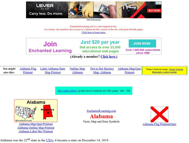 Enchanted Learning: Alabama Facts, Map and State Symbols
