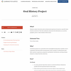 Get up-close-and-personal with history using guidance for an oral history project. An engaging resource takes pupils through brainstorming through feedback for a project to interview and collect oral histories from members of their...