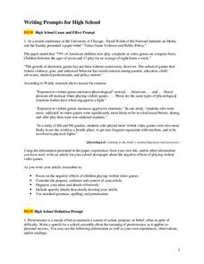 Are you teaching a high school language arts class and stumped for writing topics? Five pages of writing prompts for all kinds of writing should help you out. Many of these prompts refer to texts that are not included in this resource,...