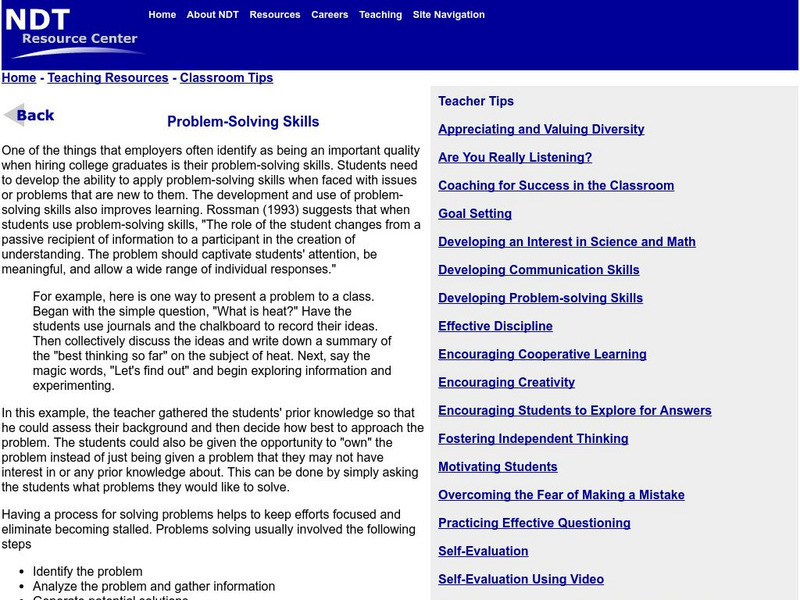 NDT Education stresses the importance of problem solving skills. Problem solving steps and strategies are provided.