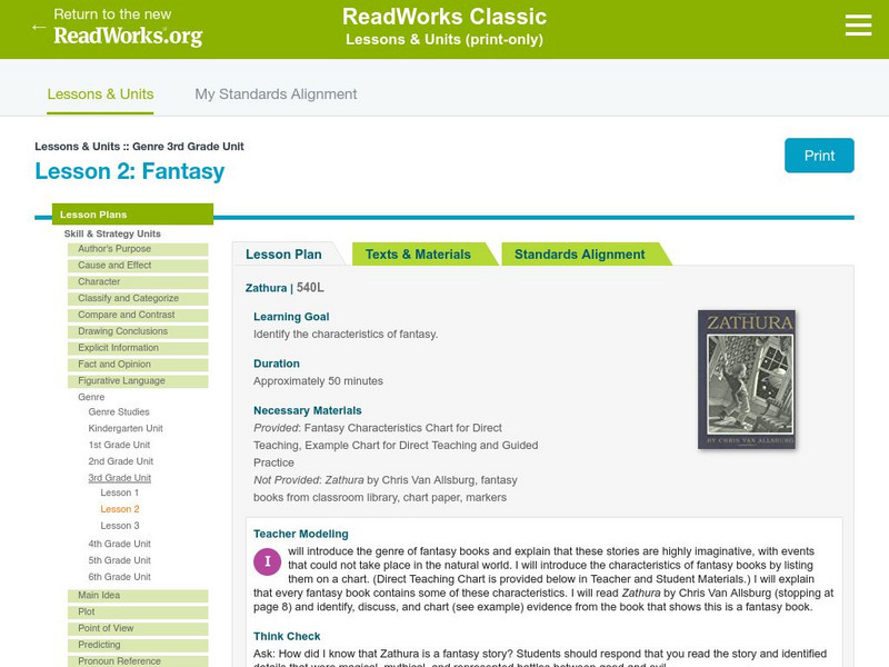 [Free Registration/Login Required] A instructional activity in which students use the book Zathura by Chris Van Allsburg and fantasy texts from the classroom library to learn about the characteristics that define fantasy. Lesson includes...